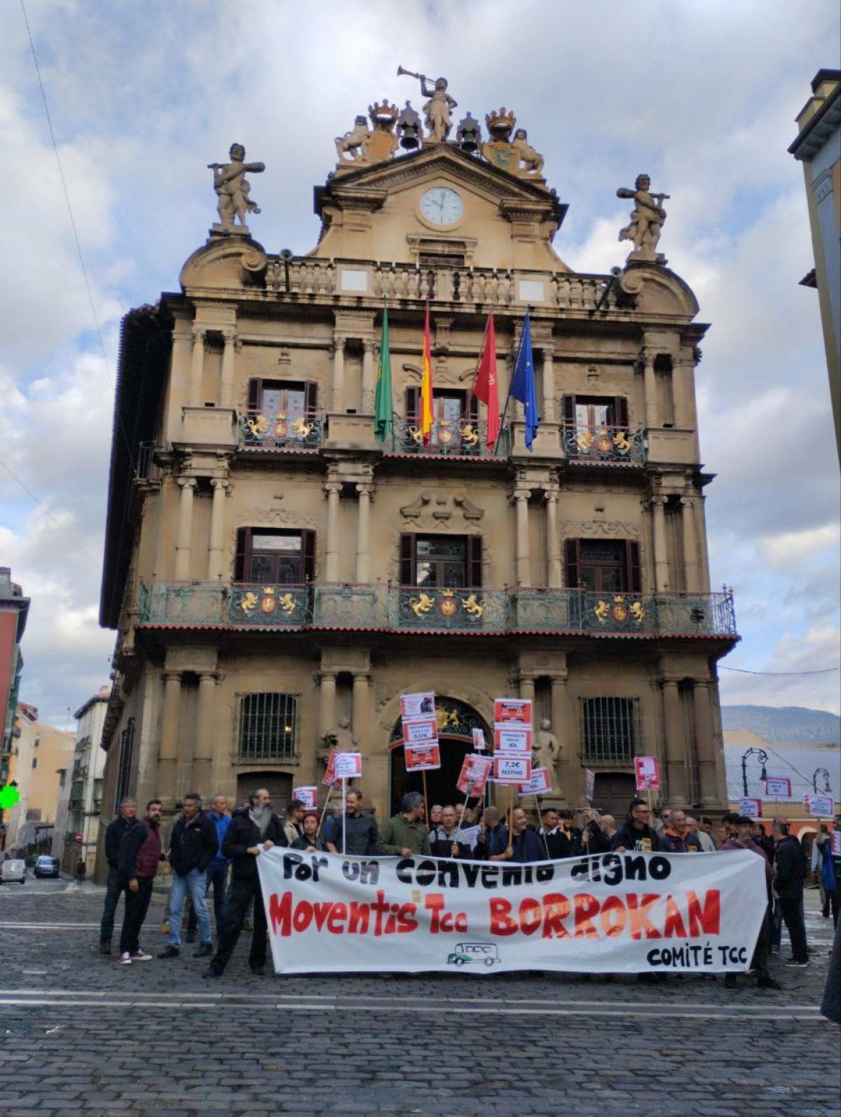 La plantilla de TCC Moventis vuelve a concentrarse, esta vez en el Ayuntamiento de Pamplona para exigir soluciones en la negociación del convenio.